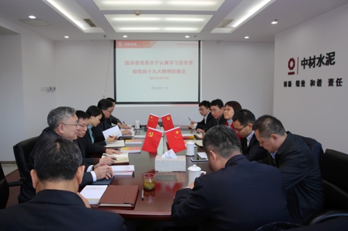 会议还学习传达了国资委学习十九大精神动员部署会、学习贯彻十九大精神报告会两个会议精神,学习了《国资委党委关于认真学习宣传贯彻党的十九大精神的意见》和集团董事长、党委书记宋志平《深入学习贯彻十九大精神 打造具有全球竞争力的世界一流建材企业》文章内容。
