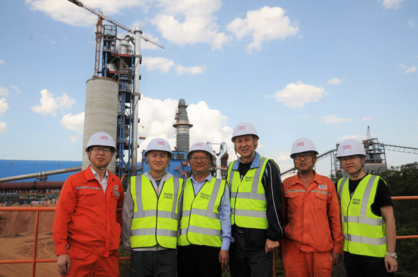 赵建华一行抵达项目现场后,按要求接受参加园区的安全培训,随后顶着烈日,在中材水泥副总经理、中材Mpande公司董事长张元慈的陪同下,现场考察了年产100万吨的水泥生产线、烧结砖生产线、投入使用的商混站等园区建设项目。