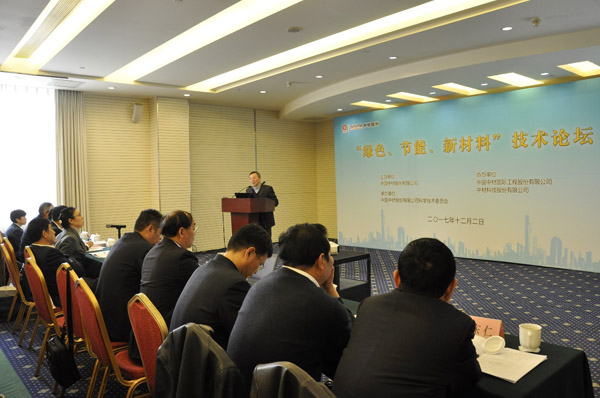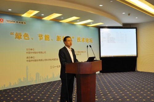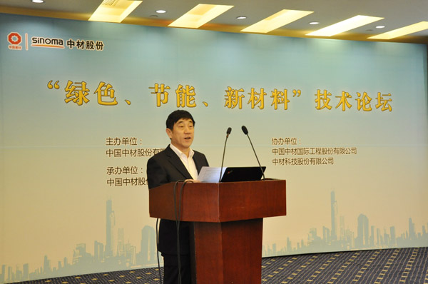 本网讯 12月2日,中国中材股份有限公司在北京举办了“绿色、节能、新材料”技术论坛。公司总裁彭建新,党委副书记兼副总裁傅金光,副总裁余明清、薛忠民、刘标等领导出席论坛,公司总部及所属各单位的领导和专家100余人参加了本次论坛。论坛由公司科技委主任余明清主持。