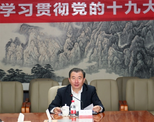 11月17日,王迎财在总部第四支部宣讲党的十九大精神