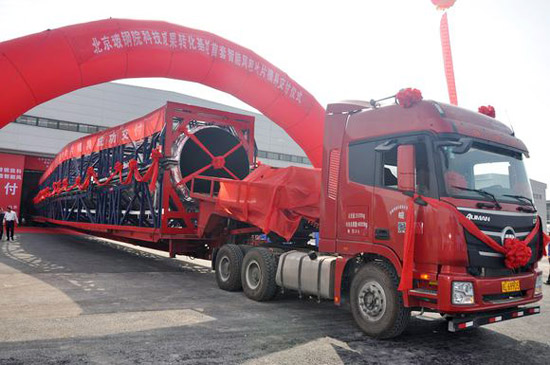 据了解,从今年年初,北玻有限就依照“一个中心,两个产业”的总体战略布局,做出了在滕州市建立科技成果转化基地的战略性决策,将公司在民品领域的电力复材、轨道交通、智能模具三项核心科研成果产业化建设布局在滕州基地。目前,基地内电力复材产业已具备设备进场条件,轨道交通复材产业已进入一期生产线试运转。风电叶片模具的交付,标志着公司滕州基地智能模具生产线已全面贯通,对整个基地建设项目,具有里程碑式的意义。随着北玻有限科技成果不断涌现,将有大批新材料成果转化落户基地。在未来几年内,将打造一个规模超过10亿元的新型复合材料产业基地。