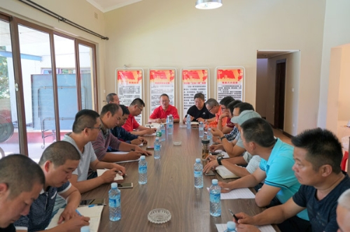 督查落实。1月9日下午,张元慈带队在项目建设现场,对各施工单位驻地开展霍乱防控现场大检查。检查范围包括中方员工的食堂、宿舍、厕所、赞比亚籍员工生活区域的防控具体措施,各单位都能高度重视并认真落实防控要求,张贴了中英文版的霍乱防治知识、现场洒生石灰、安排专人定时喷洒药物、厕所的消毒及部分旱厕改造、垃圾的焚烧深埋等。检查中也发现部分单位洗手液配备不到位,厨房的防蝇隔绝、赞方流动人员的管控登记等方面有待加强。公司将检查中发现的问题拍照登记,责令相关单位及时整改落实。
