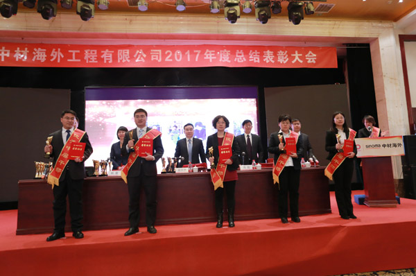 本网讯 锦鸡报捷辞旧岁,瑞犬迎新唱丰年。2018年2月1日,中材海外召开“2017年度总结表彰大会”,中材国际董事长、党委书记宋寿参加大会并讲话。公司董事长、党委书记孟庆林做总结报告。公司其他领导班子成员出席会议,在京中层干部和员工参加会议。会议由总经理高超主持。