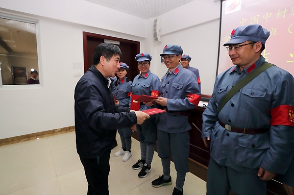 公司党委副书记、总裁彭建新,基地党委书记、中心主任王学坤为学员颁发结业证书