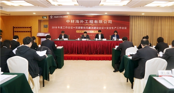 本网讯 3月30日,中材海外召开2018年度工作会、党建暨党风廉政建设工作会、安全生产工作会。董事长、党委书记孟庆林出席会议并做重要讲话;总经理、党委委员高超,党委副书记、纪委书记赵勇出席会议,公司各部门负责人、支部书记、支部委员及部分员工代表参加会议,会议由副总经理杨蕾主持。