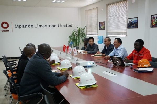 在园区现场会议室举行了简短的欢迎仪式后,中材水泥副总经理、Mpande公司董事总经理张元慈向Chris B.Yaluma部长一行详细介绍了中国建材赞比亚工业园建设、生产运营组织、园区发展规划,以及企业充分落实企业社会责任,项目开始后即在当地援建医院和学校的善举,表达了中国建材落地非洲、助力赞比亚基础建设的发展目标。