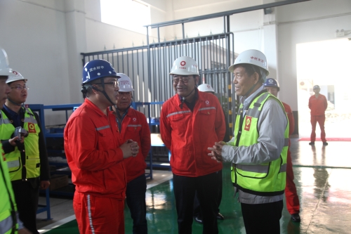 乔龙德一行首先深入企业车间班组,实地参观查看了水泥窑协同处置污泥项目施工现场、备件仓库、余热发电车间、品质部物检组、中控室、党员活动室的情况,随后在办公楼小会议室召开了调研会议,企业领导班子成员、中层干部参加了调研会。