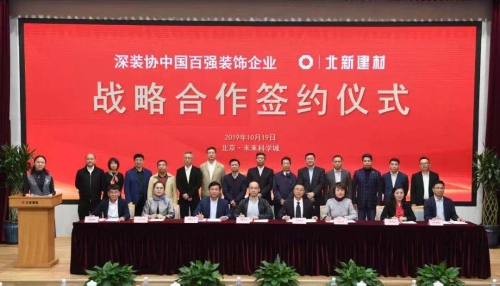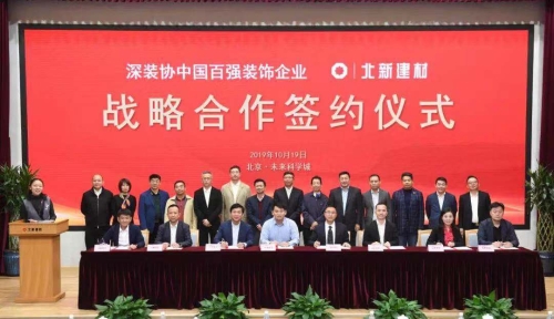 北新建材董事长王兵出席会议并讲话。北新建材总经理助理董占波、总经理助理兼北方公司总经理丁尚华、南方公司总经理邱洪、战略营销部总经理陈燕代表北新建材与26家中国百强装饰企业签约,这是中国装饰行业历史上首次大型集体签约。此前,广田集团、宝鹰集团、深装集团、深装总等13家中国装饰行业头部企业已经与北新建材签约。至此,深装协中国百强装饰企业中有39家与北新建材达成战略合作,这是北新建材联合上下游产业链协同发展、绿色发展、创新发展的基石,对促进行业立足更高标准,实现对设计、标准、材料等各方面的系统革新,推动装饰装修建材行业转型升级具有重要的战略意义。