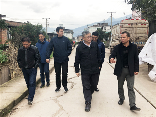 在绥江县人民政府副县长黄斌、县扶贫办主任曾宪伟的陪同下,调研组一行先后到由集团援建的罗坪村安置点、铜厂村大团岩安置点和南岸村半边红李子创业孵化园调研,实地了解驻村干部工作生活情况,调研贫困村居民 “两不愁三保障”落实情况,就贫困户帮扶、扶贫产业发展等工作进行了座谈交流。
