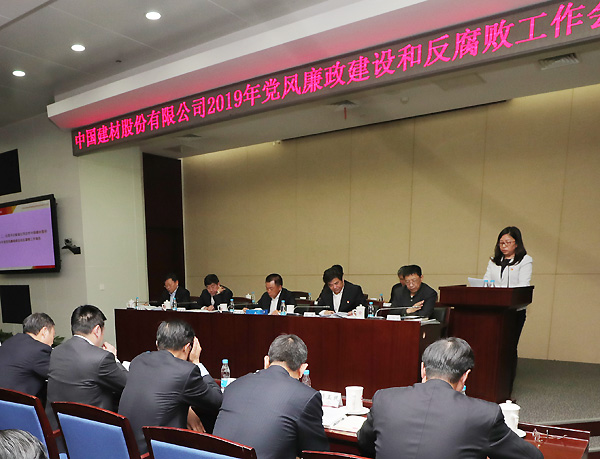 2月20日,中国建材股份有限公司在京召开2019年度党风廉政建设和反腐败工作会议,认真传达学习贯彻落实习近平总书记在中央纪委三次全会上的重要讲话精神、集团公司党风廉政建设和反腐败工作会议要求,总结2018年工作,研究部署2019年任务。集团公司党委常委、总经理,股份公司党委书记、董事长曹江林讲话强调,要以习近平新时代中国特色社会主义思想为指导,全面贯彻党的十九大和十九届二中、三中全会精神,贯彻落实十九届中央纪委三次全会、国资委机关暨中央企业党风廉政建设和反腐败工作会议精神,树牢“四个意识”,坚定“四个自信”,坚决做到“两个维护”,坚决落实管党治党主体责任,推动全面从严治党向纵深发展,以党风廉政建设和反腐败工作新成效为实现企业高质量发展提供坚强有力的作风保证,以优异成绩迎接共和国70周年华诞。集团公司党委常委、纪委书记杨杰到会讲话。股份公司党委副书记顾超主持会议,并传达习近平总书记在中央纪委三次全会上的重要讲话精神及集团公司2019年党风廉政建设和反腐败工作会议精神。股份公司党委常委、纪委书记崔淑红总结2018年公司党风廉政建设和反腐败工作,