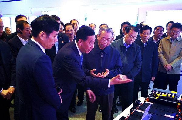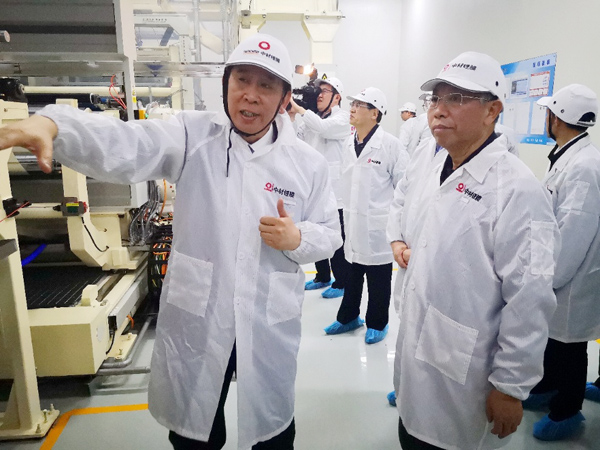 为加快新旧动能转换,近期,山东省召开新旧动能转换项目落地现场观摩会,山东省委书记刘家义、省长龚正等领导带领16个地市负责人,对日照、枣庄、泰安等多地进行交流调研。中材科技所属两家公司因转换成效明显被当地政府推荐为交流调研样板。3月20日、22日,刘家义、龚正带队分别到中材锂膜、泰山玻纤进行调研。受中国建材集团董事长、党委书记宋志平委托,集团副董事长、党委常委李新华陪同调研,集团办公室主任张继武、中材科技总裁、中材锂膜董事长刘颖、中材科技副董事长、泰山玻纤董事长唐志尧参加调研。