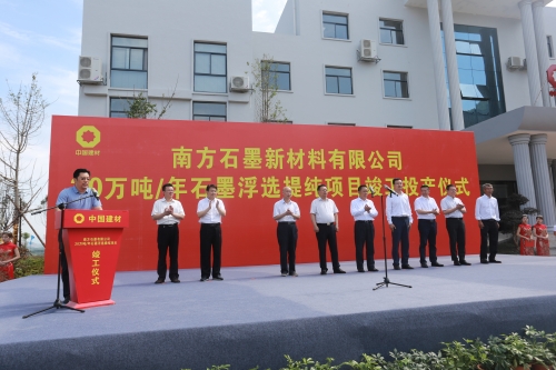 6月27日,南方石墨新材料有限公司举行20万吨/年石墨浮选提纯项目竣工投产仪式。郴州市委书记、市人大常委会主任易鹏飞,中国建材集团总经理曹江林,郴州市政协主席李评,中国建材集团总经理助理、投资发展部总经理魏如山,中国建材股份副总裁、中建材投资董事长蔡国斌,中建材投资总裁、南方石墨董事长冯玮出席仪式,郴州市副市长贺遵庆主持。