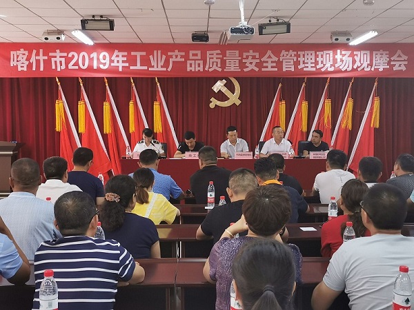7月19日,“喀什市2019年工业产品质量安全管理现场观摩会”在喀什天山公司隆重召开。喀什市工商及质量管理相关部门负责人,各企业代表等40余人参加了会议。喀什天山副经理曾玉奇代表企业作交流汇报。