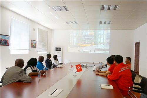 在简要参观园区后,卡翁达一行来到会议室与园区有关负责人进行了交流。卡翁达兴致勃勃地观看了园区宣传片并详细询问了园区的运营情况。他表示,本次“突然”造访始于他对包括中国建材赞比亚工业园在内的中国企业在赞比亚的发展动态的持续关注,一直想来看看,此次亲临现场,感受到了中国建材赞比亚工业园规模的宏大和壮观。他对工业园为推动赞比亚经济发展所发挥的积极作用表示肯定,称赞在赞发展的中国企业的不懈努力正是中赞“全天候朋友”关系的生动体现。