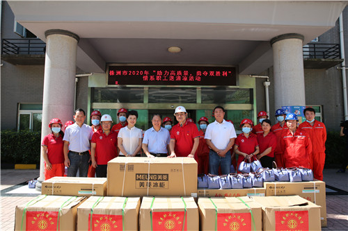 8月6日上午,株洲市人大常委会一级巡视员、总工会主席王建之,副主席冯辉、邵建平一行到中材株洲开展2020年“助力高质量,勇夺双胜利”情系职工送清凉活动,中材株洲党委书记、总经理理韩战义,党委副书记、纪委书记、工会主席张华,工会副主席、综合部经理兼党群工作部部长黎晓陪同。