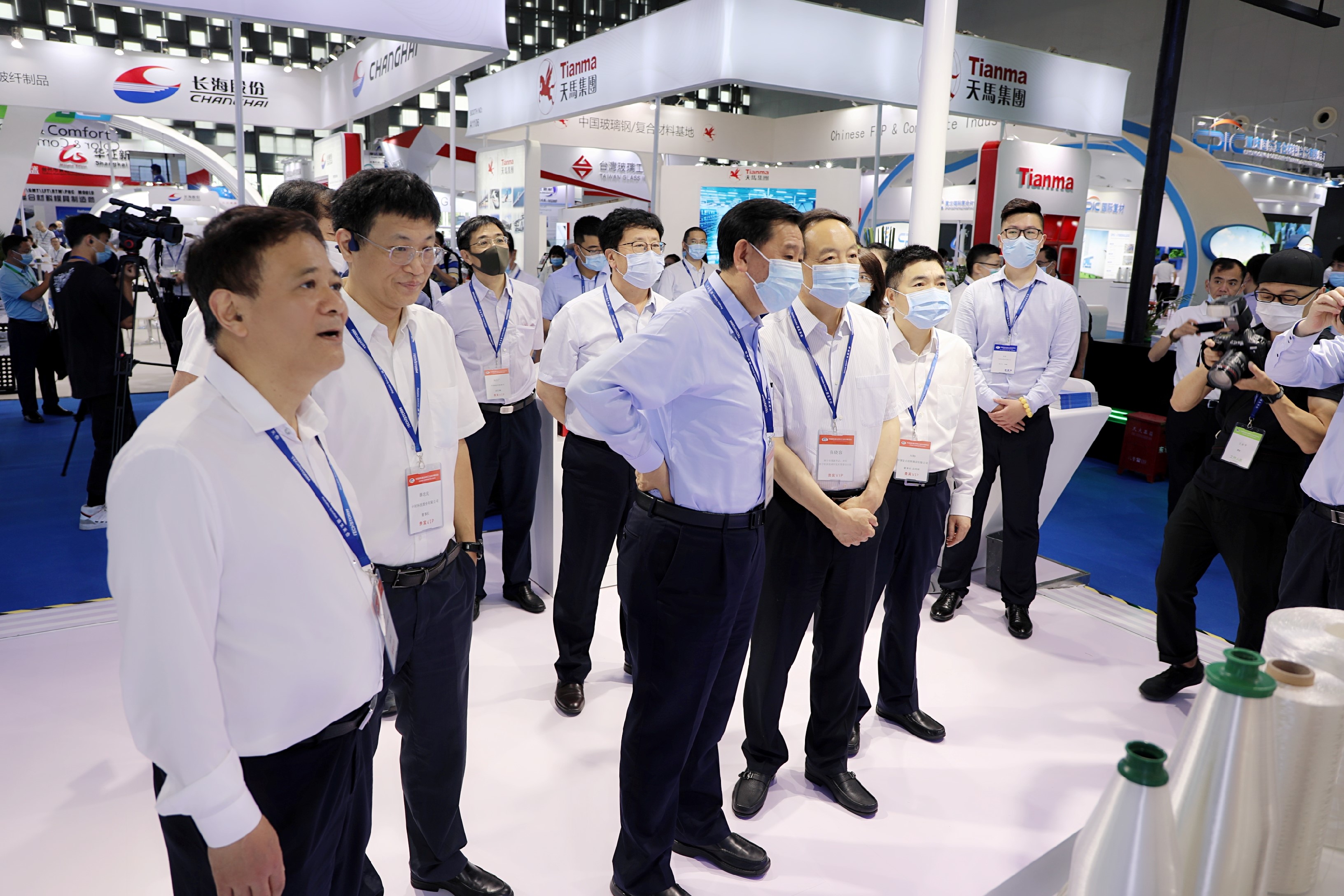 中材科技股份有限公司参加了本届展览会,宣传主题继续突出“新能源、绿色低碳、科技创新”的高新技术企业形象,重点展示了风电叶片、特种玻璃纤维及立体织物、玻纤成套装备、中空复合材料、工程复合材料、氢燃料电池储运、高性能复合材料和汽车复合材料。展会开幕后,中国建材集团副董事长李新华,西宁市委副书记、市长、西宁经济技术开发区管委会主任张晓容到我公司参观展台、听取汇报并慰问现场工作人员,中国复合材料集团有限公司党委书记、董事长兼总经理刘标,公司薛忠民、宋伯庐、赵谦、赵俊山等领导陪同参观。