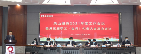 2021年1月19日,天山股份2021年度工作会议暨三届三次职工(会员)代表大会在乌鲁木齐总部顺利召开。中国建材集团党委常委、副总经理王于猛视频出席会议并作总结讲话。中国建材股份党委委员、副总裁蔡国斌视频出席会议。天山股份党委书记、董事长赵新军作题为《凝心聚力 继往开来 擘画天山股份可持续发展新蓝图》的讲话,党委副书记、总裁王鲁岩作题为《戮力同心 共克时艰 奋力开启天山股份高质量发展新篇章》的工作报告。会议由公司党委委员、副总裁王磊主持。