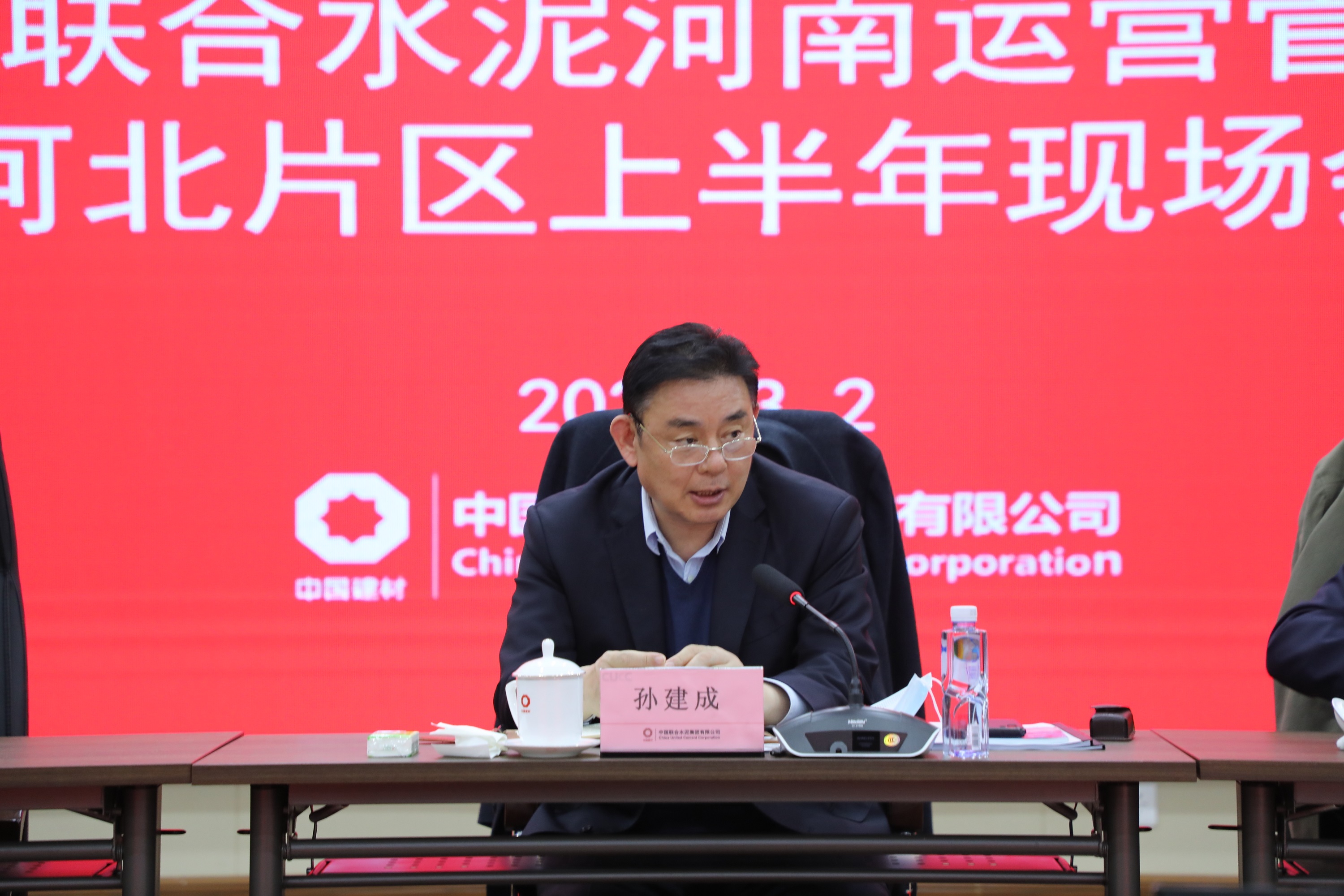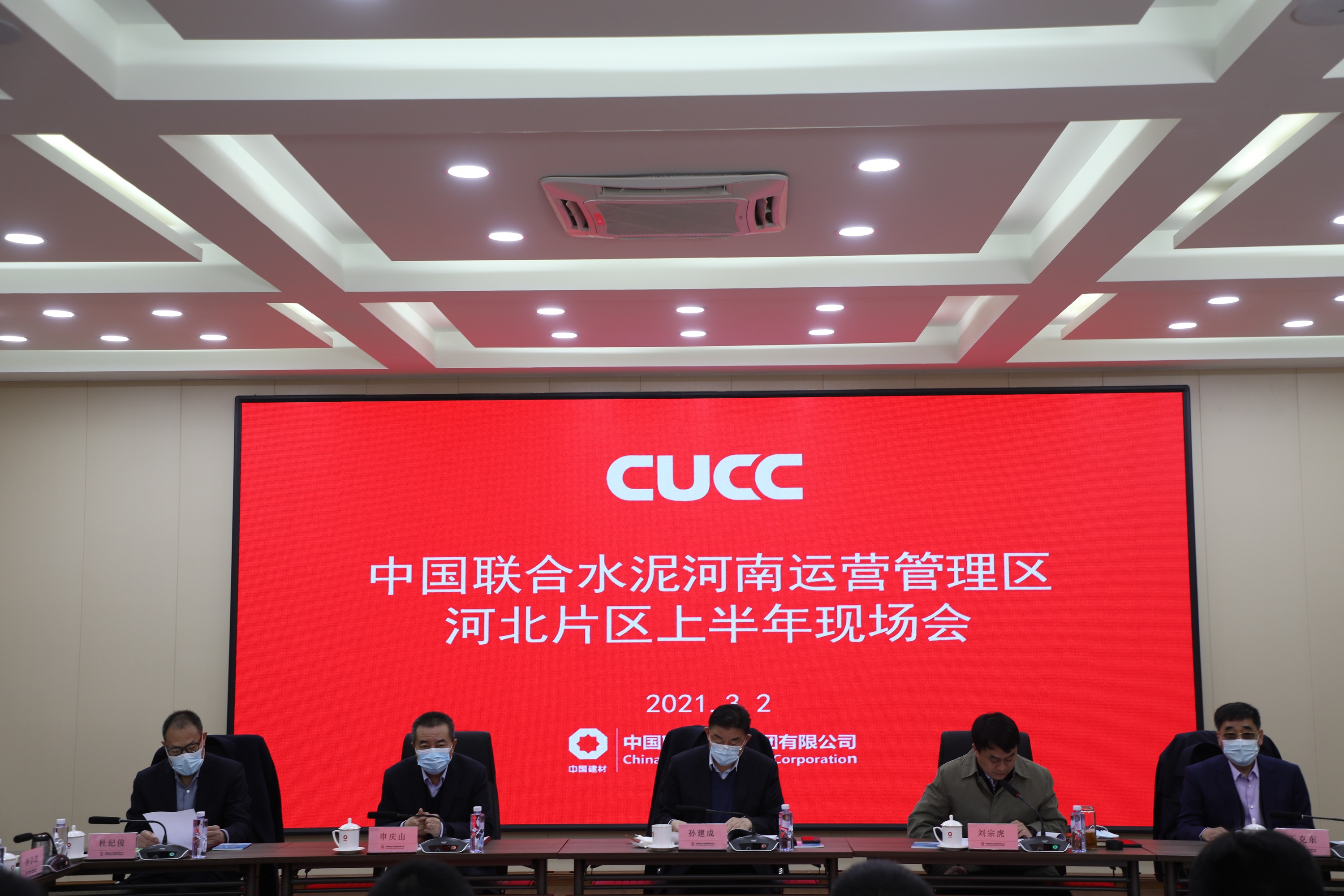 中国联合水泥总经理孙建成,中国联合水泥副总经理、河南运营管理区总裁刘宗虎,中国联合水泥高级专务、邢台中联董事长申庆山,中国联合水泥总经理助理王克东,中国联合水泥运营总监杜纪俊参加会议。刘宗虎主持会议。
