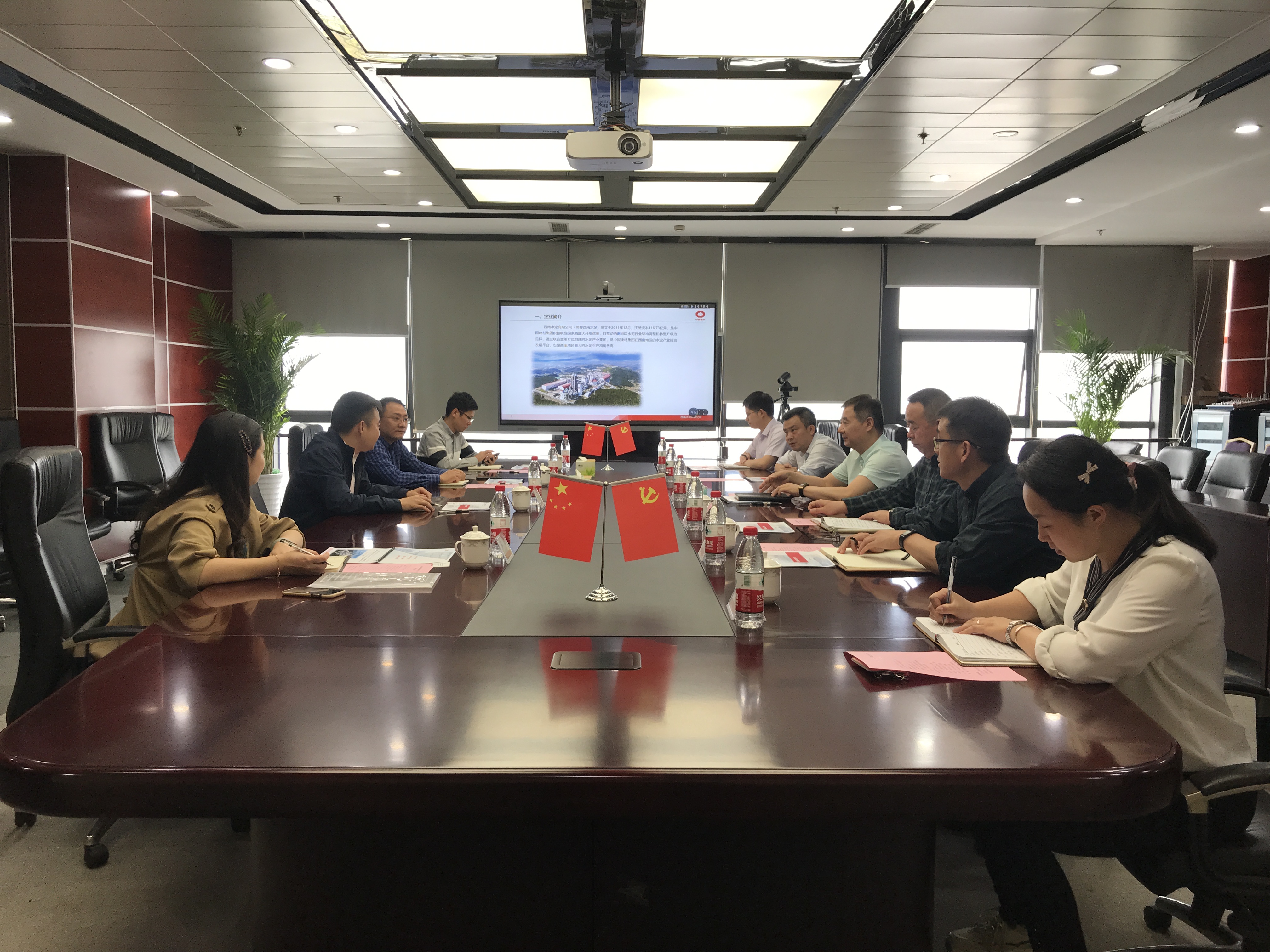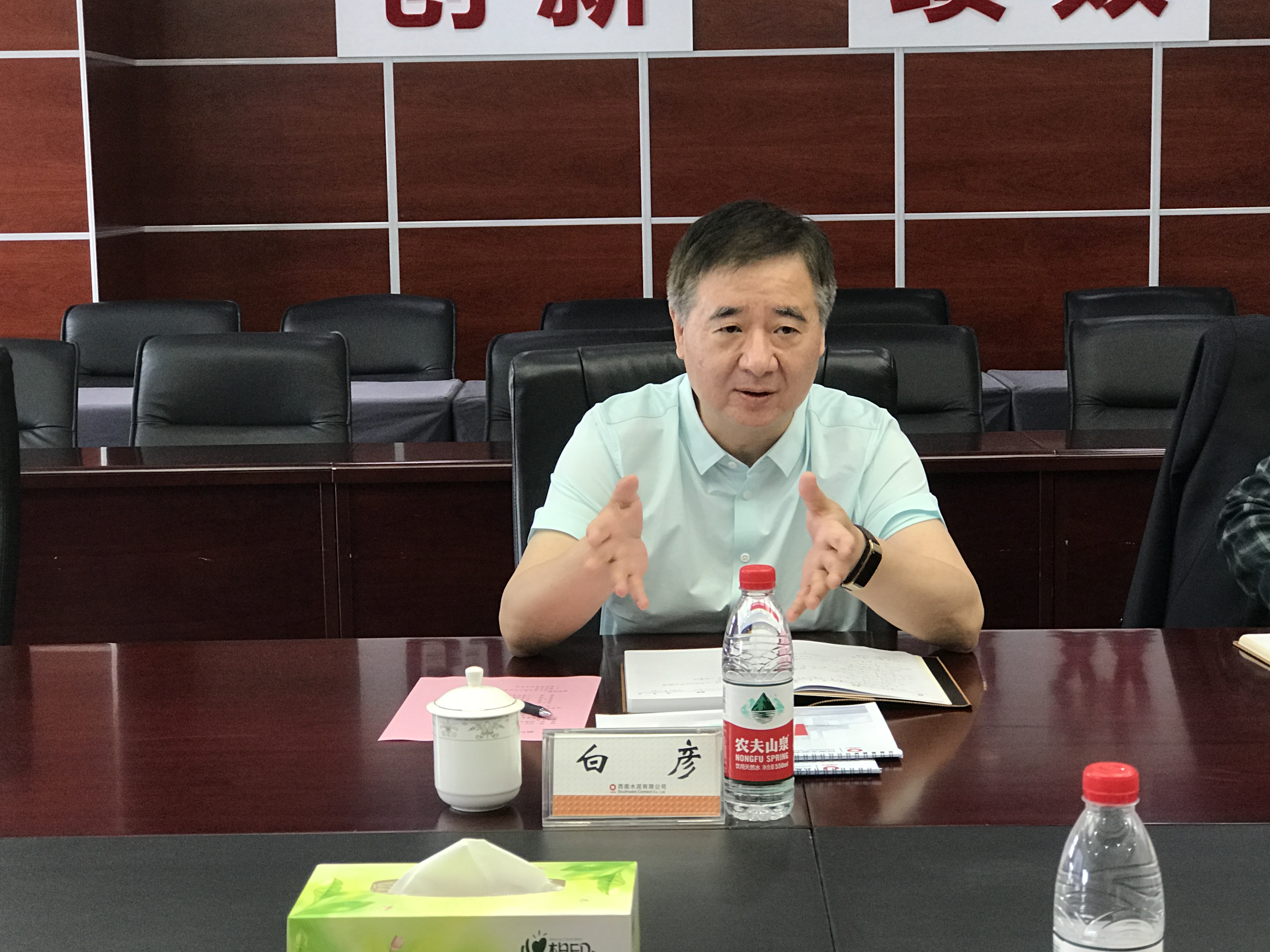 2021年5月8日,四川省国资委党委委员、副主任阙紫康一行莅临西南水泥调研指导工作,调研座谈会在西南水泥24楼第一会议室召开。省国资委对外合作促进处处长张展智,一级调研员郭希,王勃力陪同调研。西南水泥党委书记、执行总裁白彦,党委副书记、副总裁张子斌,财务总监、副总裁潘毅,行政人事部总经理殷平伦及川渝西南有关人员参加座谈。 调研座谈会上,白彦从公司经营发展、三精管理、转型升级、党建工作及在川企业转型升级存在的问题等方面进行了全面汇报,希望在水泥减量置换政策上能得到政府支持,帮助解决企业面临的实际困难和问题,并表示西南水泥将在响应中央“碳达峰、碳中和”绿色发展要求、加强央地合作、引领当地经济发展、稳定行业秩序、提升行业竞争力等方面持续发力,履行央企责任。 阙紫康传达了四川省副省长李刚与中国建材集团党委书记、董事长周育先在京的会谈精神,围绕西南水泥在川企业转型升级中亟待解决的问题、行业发展面临的关键制约因素等进行深入调研,并向西南水泥征求对于推动央地融合发展的意见建议。 通过此次调研座谈会,沟通了情况,协调了工作,调研了问题,达成了共识。今后将进一步做好沟通协调工作,力求破解水泥行业结构调整和转型升级中,所遇产业政策障碍,深入挖掘央地双方合作共同点,携手推动央地融合发展新篇章。 |