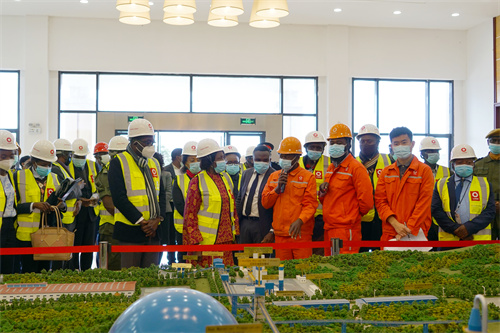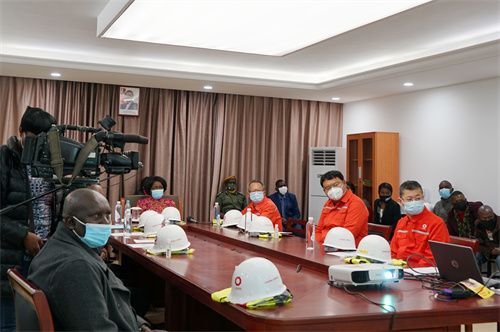 伊农格·维纳一行首先来到销售楼会议室,全员一起观看了中国建材集团文化宣传片及中国建材赞比亚工业园介绍短片,对企业项目投资建设、创造就业、社会履责、企业生产经营现状进行了初步了解。
