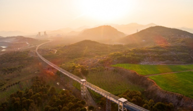 2018年8月,中国建材股份所属南方水泥积极践行“绿色青山就金山银山”的理念,根据浙江长兴和安徽广德环太湖区域水泥熟料生产基地的道路运输和环境压力,勇担责任打造了一条22公里的全国最长熟料“空中运输走廊”。这条全电物流走廊具有全封闭、全架空、耐高温等优点,大大缓解了当地公路运输压力,减少了扬尘、噪音、尾气对环境的影响,得到政府部门和周边居民的交口称赞,被交通运输部列入绿色示范项目。