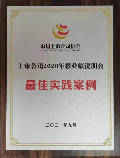 2021年9月2日,中国上市公司协会以现场和视频相结合的方式举办“上市公司2020年报业绩说明会经验交流会”,证监会、国资委领导出席主会场会议并讲话,对评选为“最佳实践案例”的上市公司予以表彰。公司党委书记、董事长尹自波及董事会秘书、总法律顾问林凤萍在宁夏证监局分会场视频连线参加会议,宁夏证监局局长马炜在会议现场为公司颁发奖牌。