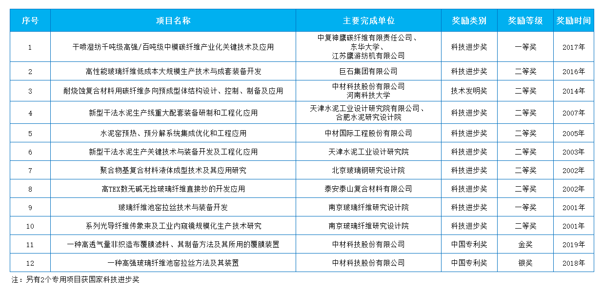2000年以来中国建材股份有限公司及所属企业获国家科技奖励项目名单