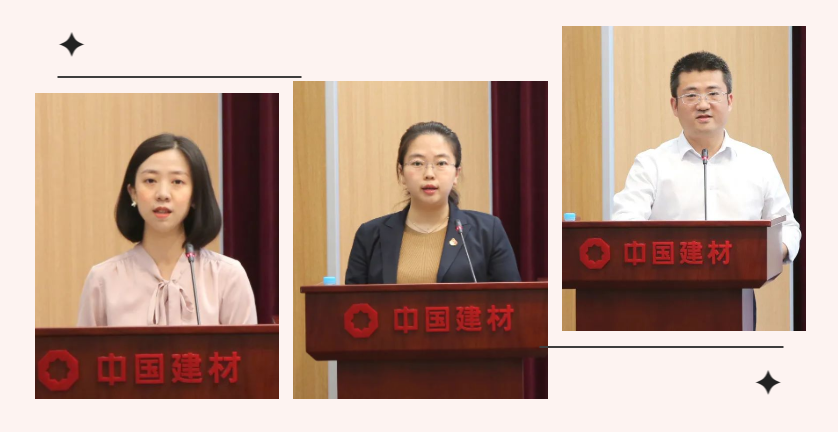 来自北京东方建宇混凝土科学技术研究院有限公司的赵玉芳、南京玻璃纤维研究设计院先进材料公司的瞿书涯、天津水泥工业设计研究院有限公司数字化研究所的孙利波等三名优秀80后、90后青年代表,分别以《让理想在奋斗中升华 让青春在岗位上闪光》《臻于至善 匠心筑梦》《数字化技术助力数字化转型发展》为主题,分享了个人及所在青年团队的工作和成长历程。